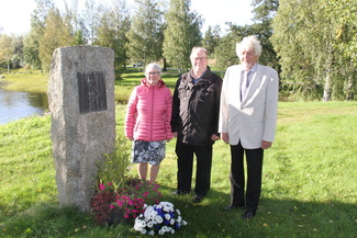Mäntsän suvun muistomerkille veivät jo edellisenä iltana kukkatervehdyksen Marja Valtee, Pekka Vanhanen ja Markku Peltola. Muistomerkki sijaitsee Koskelanlammen rannalla Mäntässä. |