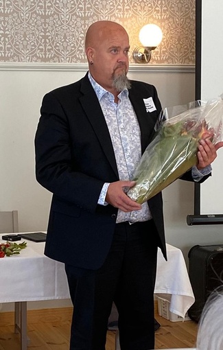 ![]() Lankkuan sukuseuran puheenjohtaja Jyrki Ahola toi tervehdyksensä sukujuhlaan |